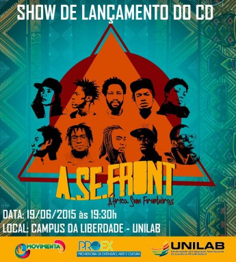A Pró-reitoria de Extensão, Arte e Cultura (Proex) convida a todos e todas para o show de lançamento do CD de rap do grupo A.SE-Front, criado por estudantes da Unilab.